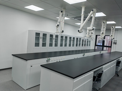 1.材 料:櫥柜臺面選用12.7mm厚威盛亞實芯理化檢驗板,邊沿加厚為25.4mm,耐耐蝕、防潮、防水、耐耐高溫塑料耐磨涂層、耐對抗、不改形、沒毒、易清潔衛生、并存在更好的承重力度耐腐蝕性。